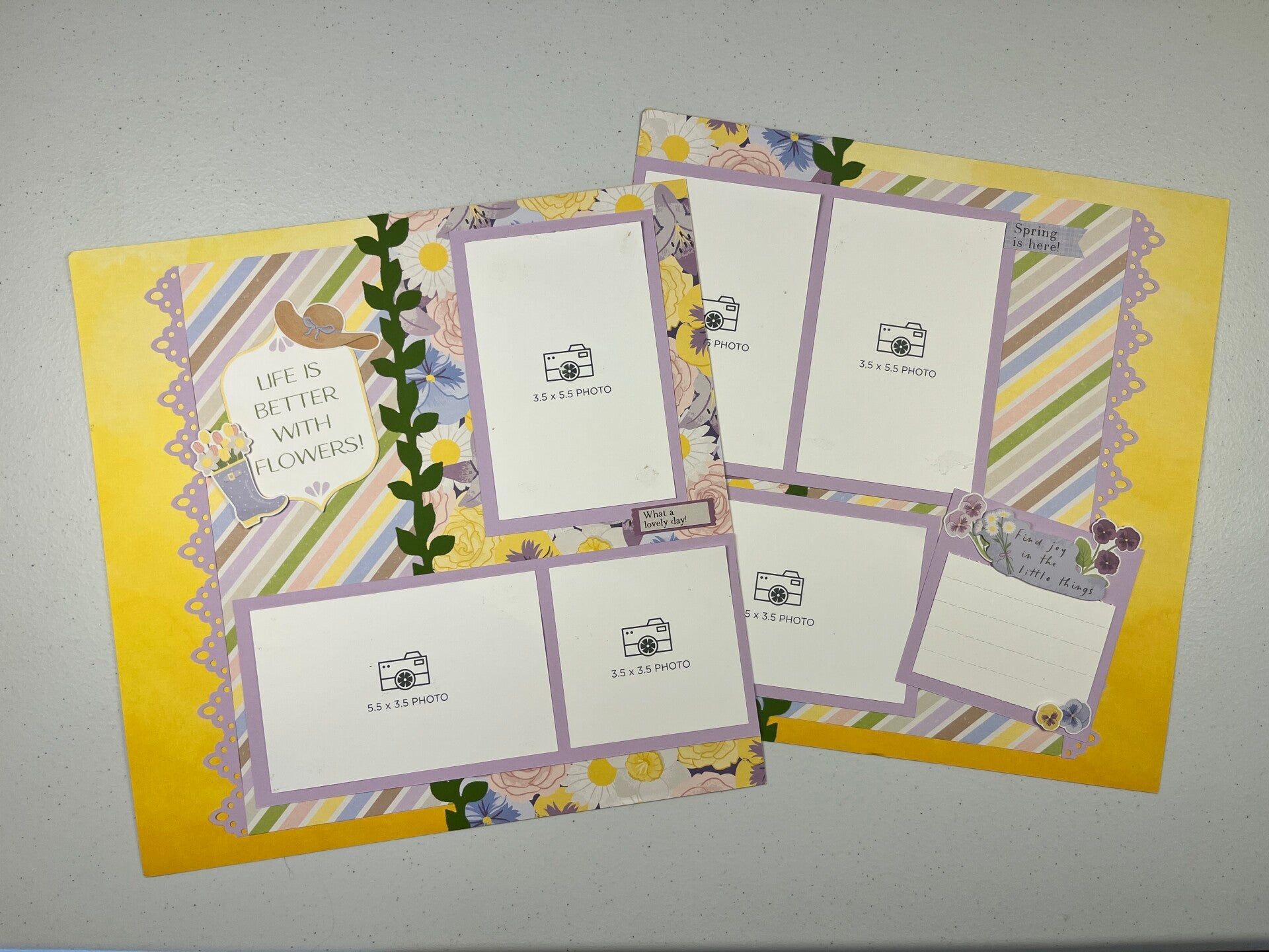 Double Page Premade Scrapbook Layout featuring the spring soiree collection and the dollop frame and leafy vine punch