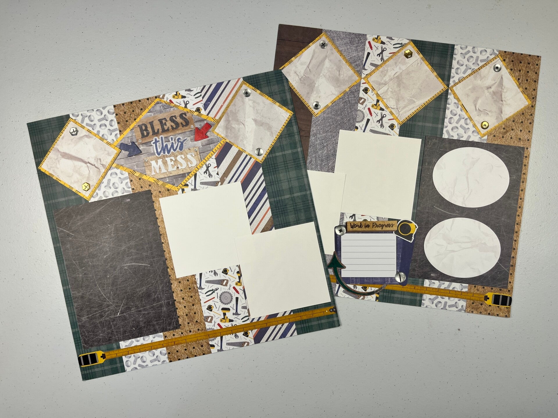 Double Page Premade Scrapbook Layout featuring the Riveting collection